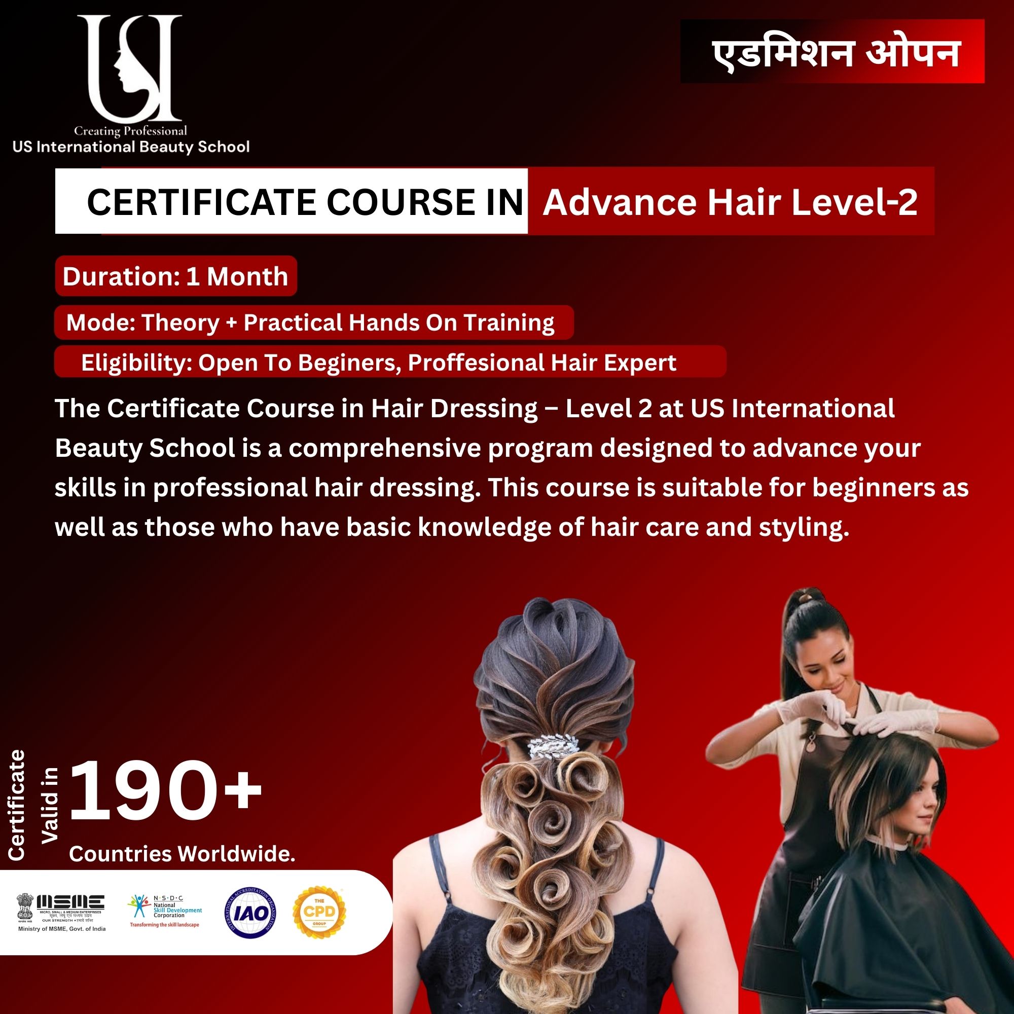 US International Beauty School of Rajouri Garden offers a certification course in Professional Advance Hair – Level 2 to start your career as a Hair professional.