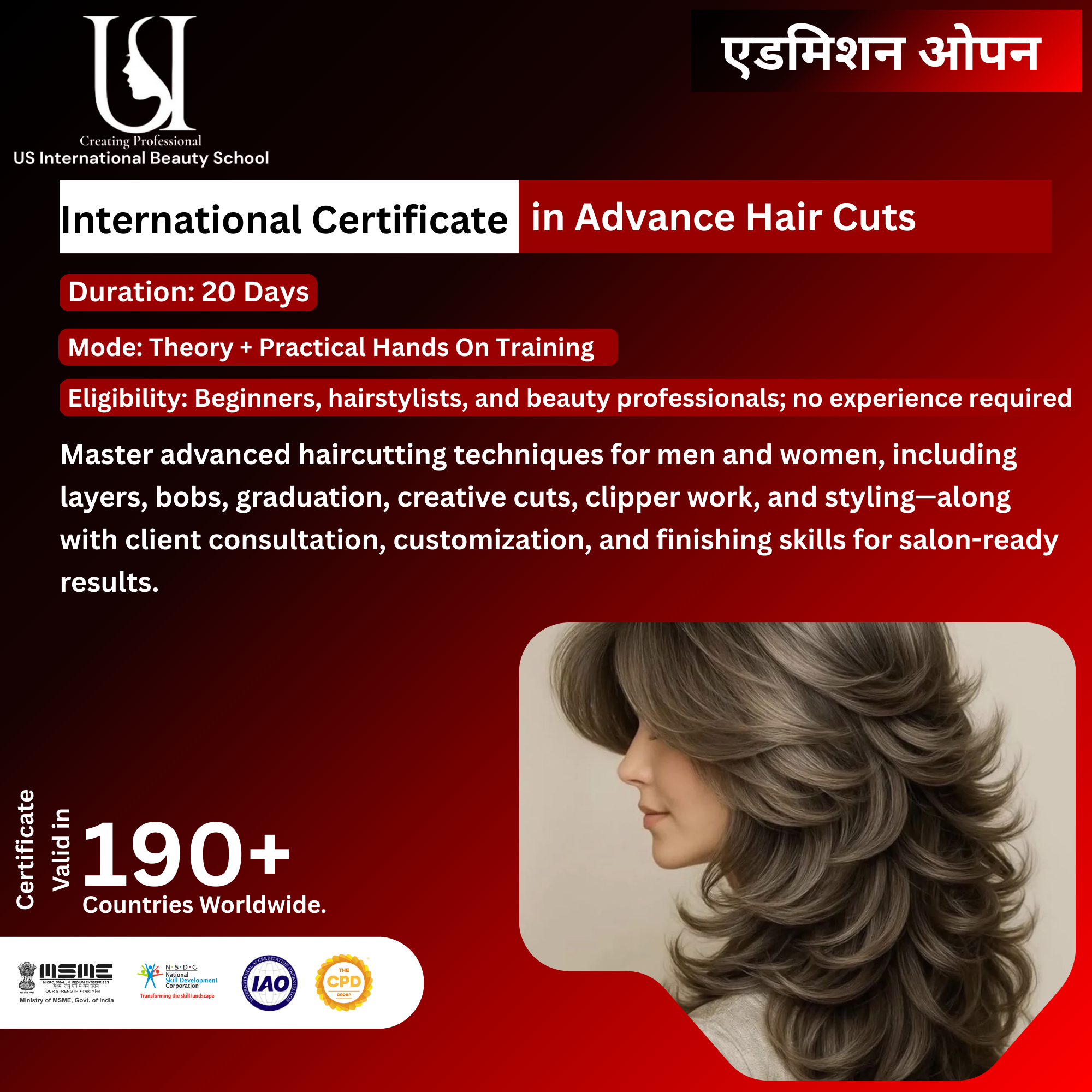 US International Beauty School of Rajouri Garden offers a certification course in Advance Hair Cuts to start your career as a Hair professional.