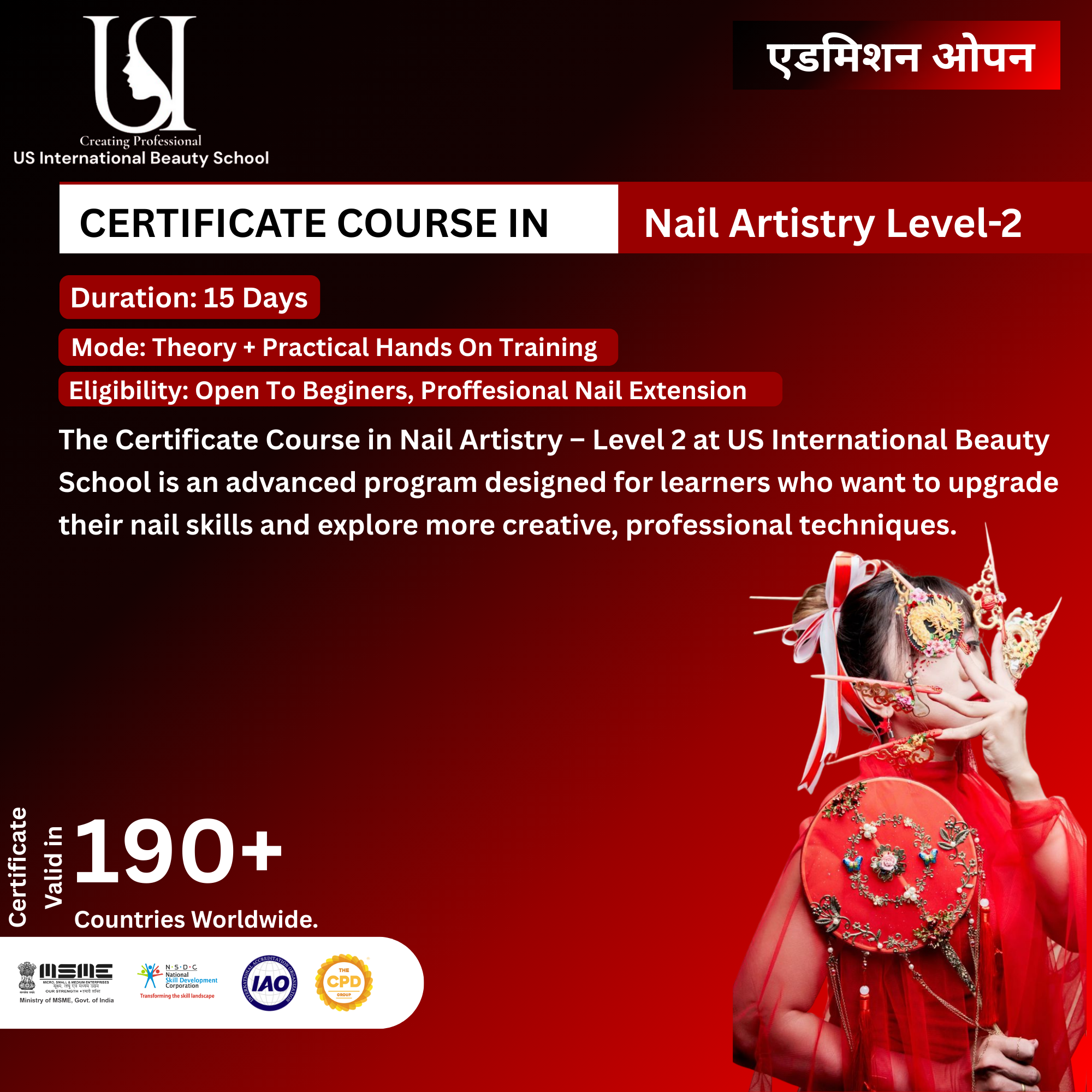 Kickstart your beauty career with the Best Advanced Nail Artistry Course in Delhi NCR at US International Beauty School. Master Nail Artistry techniques with expert training in just 2 Months.