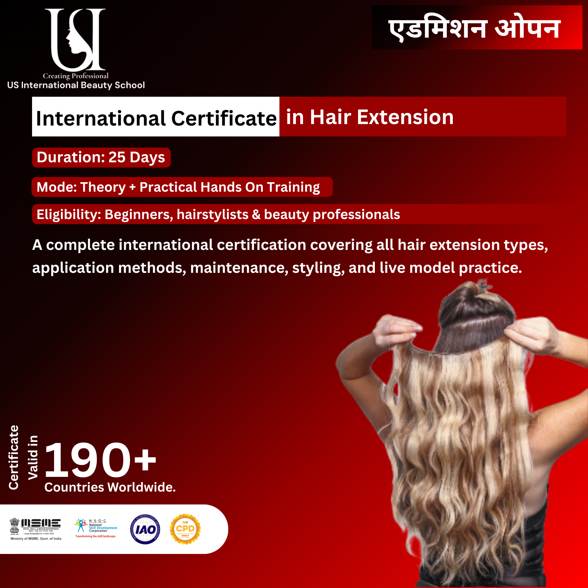 US International Beauty School of Rajouri Garden offers a certification course in Hair Extension to start your career as a Hair professional.
