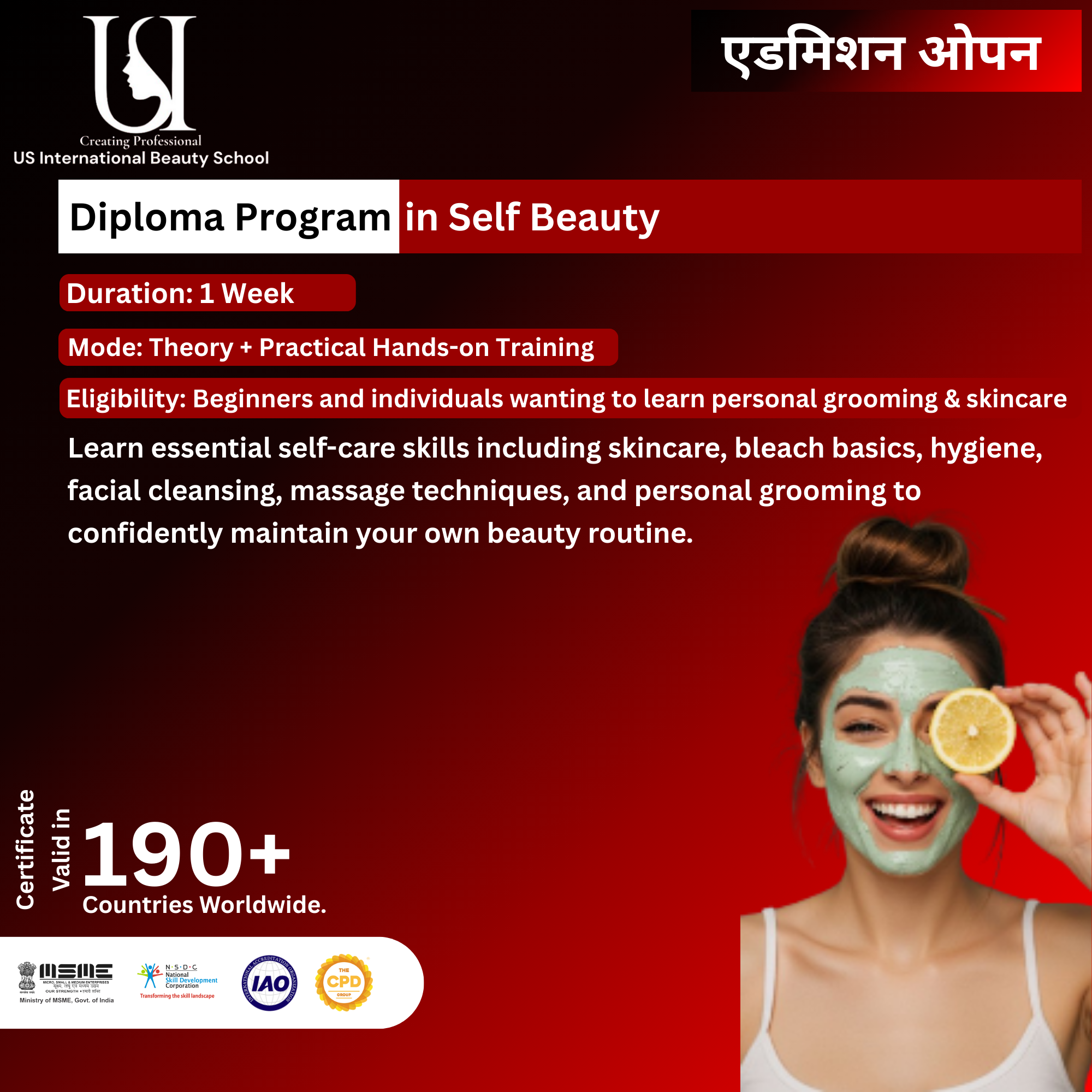 Our Best Self Beauty Course in Delhi NCR The Self Beauty Course at US International Beauty School is designed to help individuals enhance their personal grooming and everyday appearance with ease. This routines, hair maintenance, basic makeup application, personal hygiene, and product knowledge.