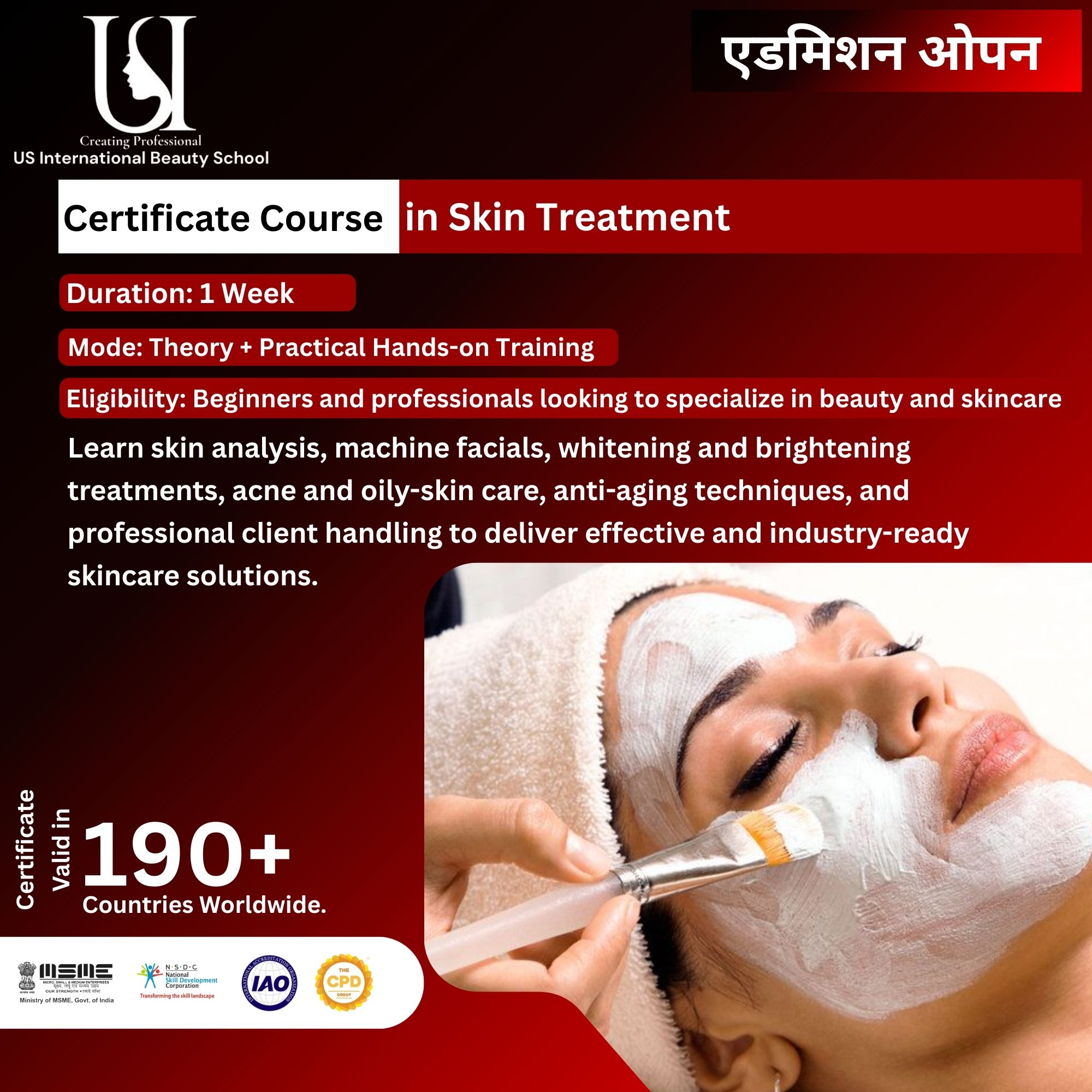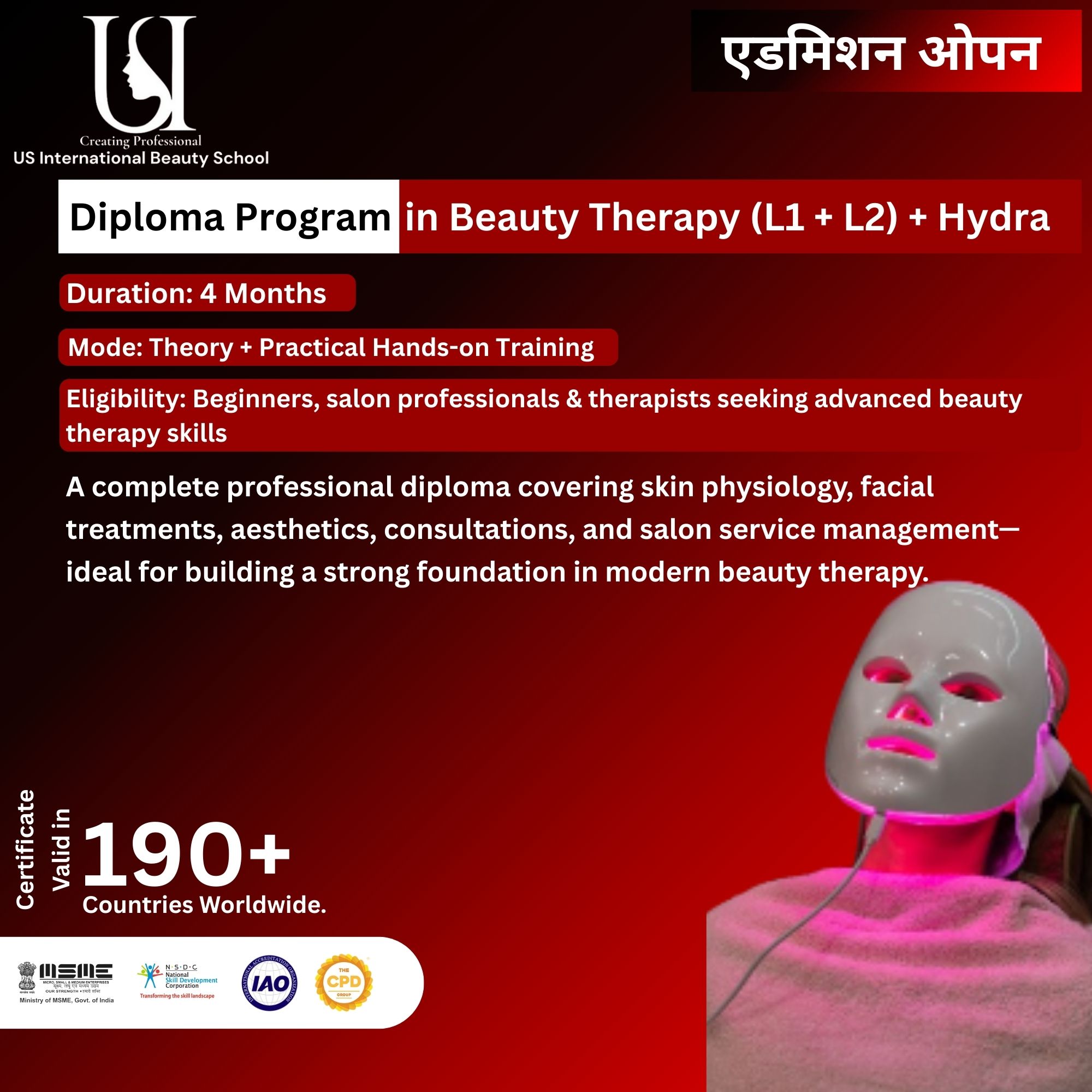 Designed for those aspiring to become qualified skin therapists, this foundation program blends theory and practice: Core topics covered: skin anatomy, skin types/concerns, skin disorders, professional hygiene, tools and product knowledge, cleansing, toning, exfoliation, steam, extraction, massage, masks, and complete facials. Holistic modules: includes nutrition for skin; body spa techniques; basic nail, manicure, and pedicure skills; and aromatherapy for enhanced relaxation and rejuvenation